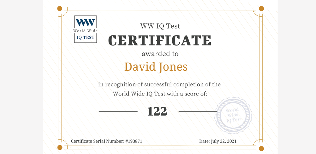 Your IQ test was analyzed and compared to other participants’ results in your country.